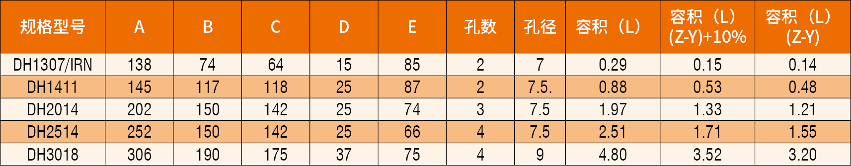 备注:上述DH斗安装孔处均为凹孔或带凸台(DH1814除外),故孔距及孔径均不可调整