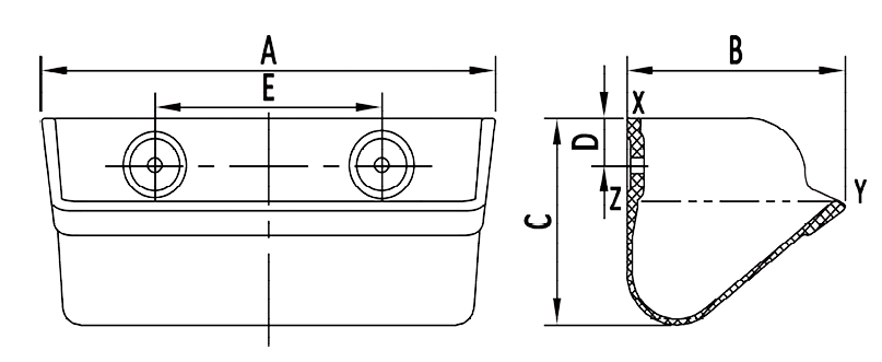 备注:上述四个规格DH1411~3018斗为国外用户特殊定制,安装孔处均带凸台(DH1307/IRN除外),故孔距及孔径均不可调整。